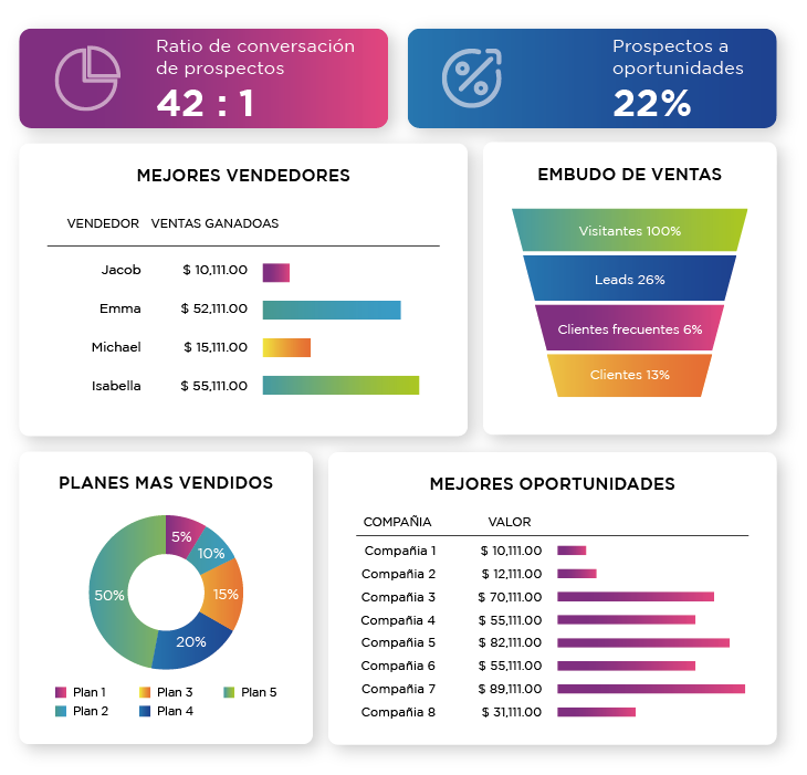 Convierte cada oportunidad en una venta exitosa. Fortalece la relación con tus clientes desde todos los ángulos: